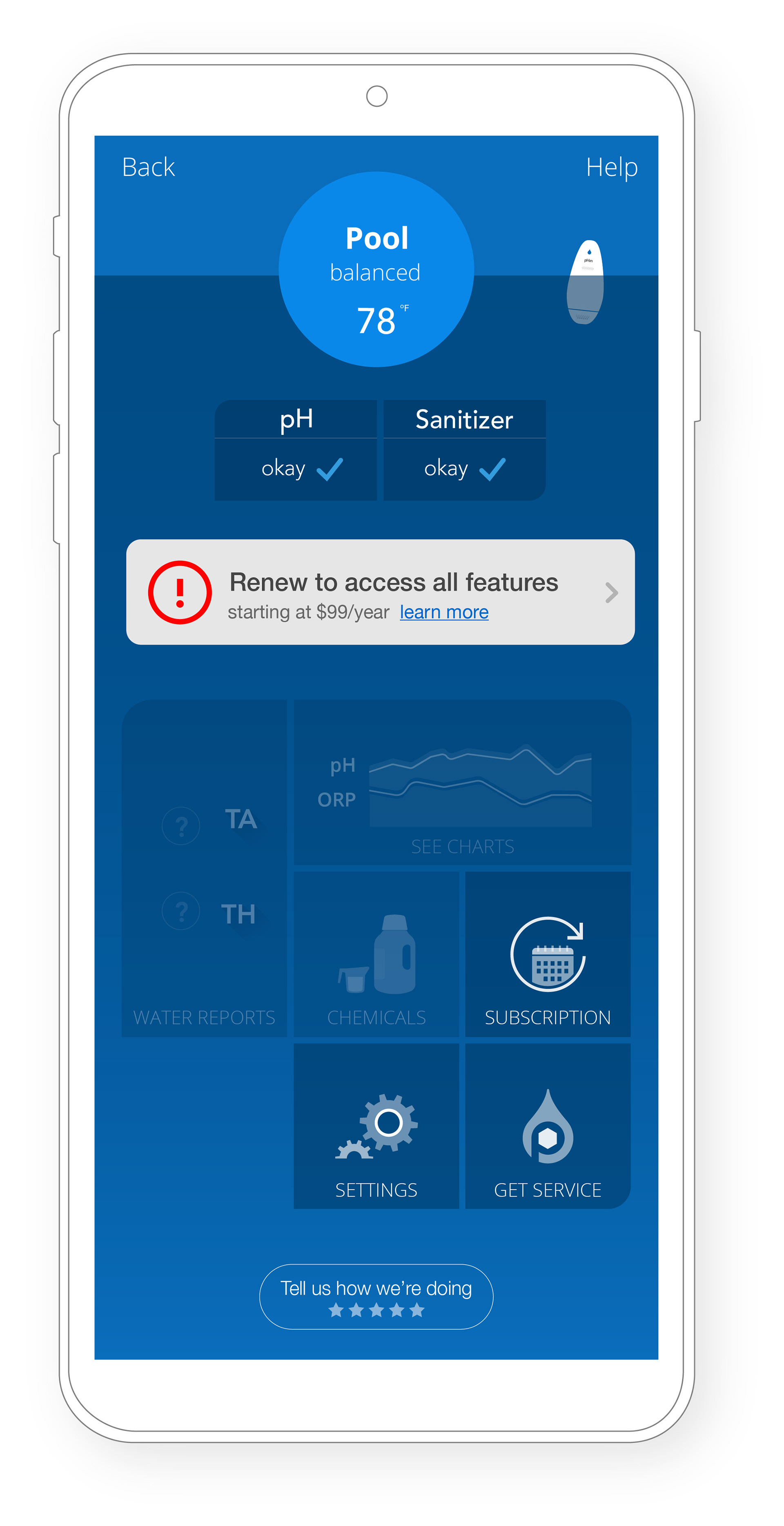 With the purchase of a pHin device, first year of monitoring service is included for free. After one year when the subscription expires, users will have limited access to the pHin mobile app features. At this point, a "RENEW" action will be sent out to customers, encouraging them to extend their subscription.